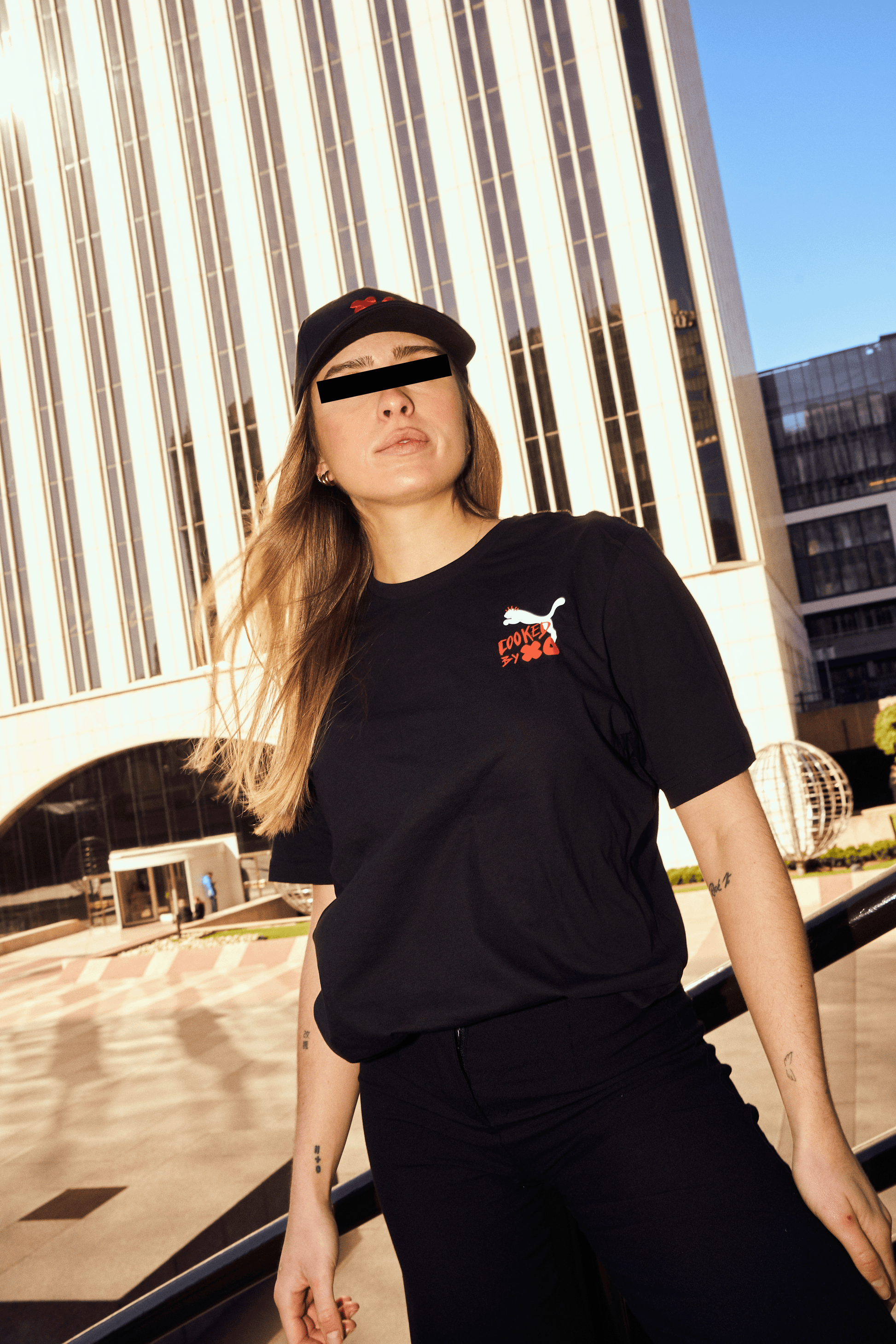 Camiseta XO en colaboración con Puma. Hecha de 80% algodón y 20% polyester.